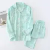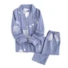 Fresh pajamas sets women 100% gauze cotton Japanese summer long sleeve casual sleepwear women simple cute bear pyjamas