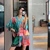 New Summer Women Pajama Set Hand Drawn Art Tropical Plants Pyjama Set Silk Like Nightwear Shorts Home Wear Clothes Sleepwear
