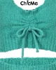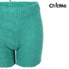 Chicme Women Fluffy Drawstring Sleepwear Ruched Cami Set Casual Two Pieces Sleeveless U-Neck Top and Shorts Set Home Lounge Wear
