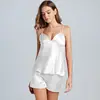QWEEK Satin Women's Pajamas Sexy Sleepwear Summer Pijama Female Set Woman 2 Piece Pyjamas Solid Nightwear Home Suit Homewear