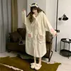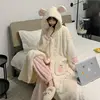 Winter Thickened Pajamas Sleeping Robe Female Cute Female Students Cartoon Bear Paw Warm Pajamas Set Night Gown Night Dress