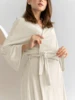 Linad Towel Female Home Robe Nightgowns Solid Gray Bathrobes For Women Home Wear Long Sleeves Sleepwear Spring Casual Loungewear