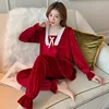 Fdfklak Net Red Fleece Pajamas Women Fashion Spring Autumn Winter Sleepwear Pijamas Set Long Sleeve Ladie's Casual Home Suit