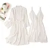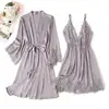 Lace Trim Sexy Wedding Lady Robe Suit Loose Satin Bride Bridesmaid Kimono Bathrobe Gown Mini Sleepwear Rayon Intimate Lingerie