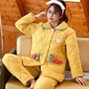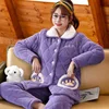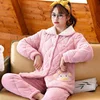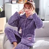 Pajamas Set Women Three-Layer Thicken Flannel Sleepwear Pyjamas Suits Coral Fleece 2 Pieces/Sets Long Sleeve Home Clothing