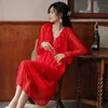 Nightdress Female Spring Autumn Long Wedding Dress Modal 2022 New Benmingnian Sexy Nightgown Home Clothes Lady Nightwear Skirt