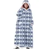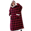 Wearable Warm Thick Hooded Sweater Blanket Unisex Giant Pocket Adult and Children Fleece Long Length Blanket for Bed Travel Home