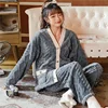 2022 Autumn Winter Pajamas Set Women Flannel Pyjamas Sets Coral Velvet Sleepwear Long Sleeve Pyjamas Female Homewear