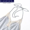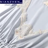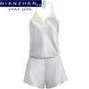 NIANZHEN 100% Real Natural Silk 19 Momme Sexy Pajamas Set Lace Hollow Backless Suspenders Silk Shorts Homewear for Women 60400