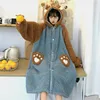 Women Pajamas Thickened Warm Nightgown Plus Velvet Sleep Robe Autumn and Winter Cute Home Service Mid-length Sleepwear Fashion