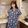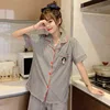 QWEEK Women's Pajamas Set Spring Summer Sleepwear Kawaii Moon Bow Pijamas Plaid Striped Pyjamas Teen Girls Home Clothes Roomware