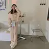 QWEEK Sleepwear Women's Cotton Trouser Suits Pink Floral Pajamas Spring Autumn Home Clothes Kawaii Pijamas Pyjamas Nightwear
