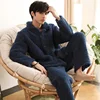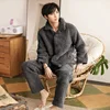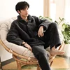 Winter Warm Pajama Sets Men Flannel Warm Pyjamas Sets Long Sleeve Nightwear Casual Loose Sleepwear Suit