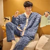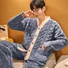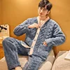 Pajama Sets Men Winter Coral Fleece Thick Warm Flannel Pyjamas 2-Piece Set Long Sleeve Nightwear Sleepwear Home Clothing