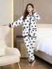 Snow White Pajama Cow Print for Women Leep Suit Silk Feminino Pijama Mujer Girls Robe Kawaii Cute Thermal Underwear Set Winter