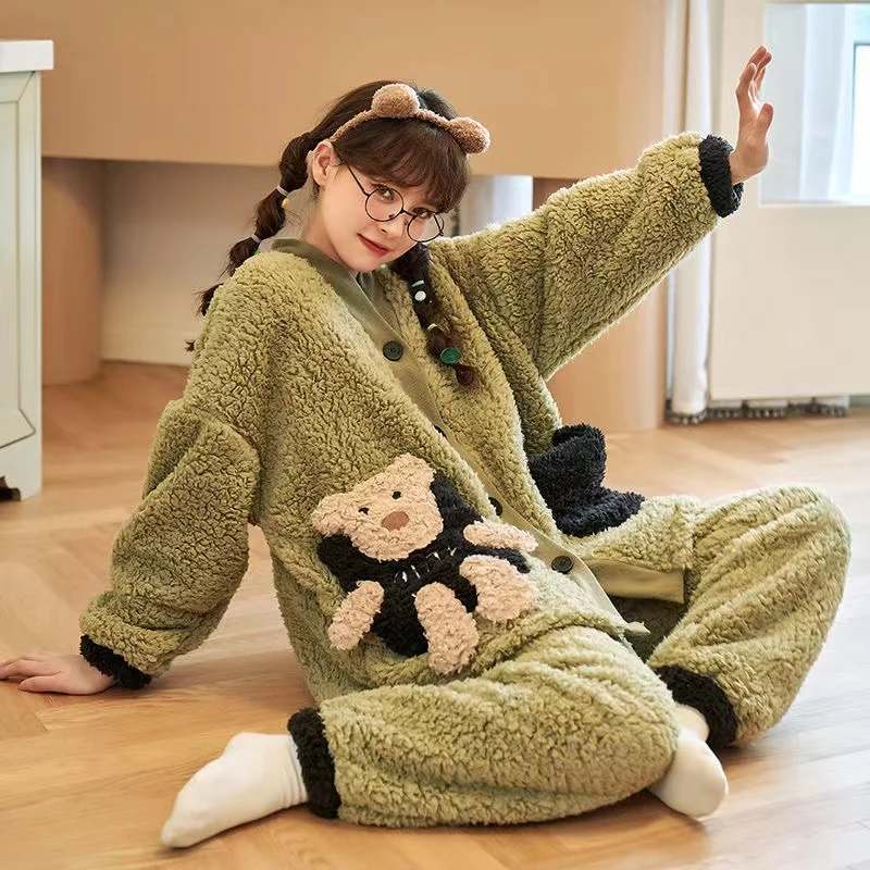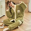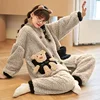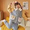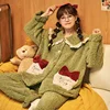 Coral Fleece Pajamas Set For Women Winter Thicken Warm Flannel Female Sweet Cute Long Sleeve Full Trousers Pyjamas Suit Homewea