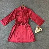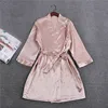 QWEEK Women's Dressing Gown Wedding Kimono Sleepwear Solid Color Nightie Bathrobe Terry Female Nighty for Ladies Sexy Roomware
