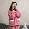2022 New Winter Women's Pajamas Sets Sweet Thicken Warm Flannel Pyjamas Soft Nightwear Long Sleeve Home Clothing Ladies Pajamas
