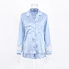 Feathers Pajamas Women 2 Piece Set Long Sleeve Turn Down Collar Top Autumn Summer Casual Night Suits with Shorts Satin Christmas