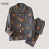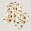 Conjunto Pijamas Pareja Spring/summer Pure Cotton Yarn Long Sleeve Pajamas Women Suit Autumn New Cartoon Two-piece Men Homewear
