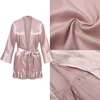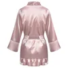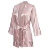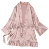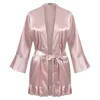 Women Pajamas Silk Robe Ruffle Sleeves Kimono Bathrobe For Women Sexy Nightwear Pink Sleepwear Plus Size Pajamas Robe Nightdress