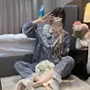 QWEEK Sleepwear Set Woman 2 Pieces Pajamas Vintage Ruffles Bow Pyjamas Nightwear Pijamas Trouser Suits Spring Autumn Home Wear