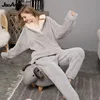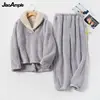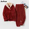Winter Warm Pajamas Women's Solid Coral Fleece Pijamas Trousers Two-piece Korean Fashion Plus Size Sleepwear Home Clothes Suit