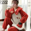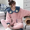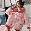 Flannel Pajamas Sets For Women Coral Fleece Winter Thick Warm Sleepwear Loungewear Plus Size Loose Homewear Home Suit
