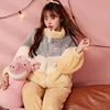 Coral Fleece Pajamas Sets For Women Winter Thick Warm Sleepwear 2 Pieces/Set Loungewear Pyjamas Suit Homewear Clothes