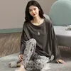 Women Sleepwear Pajama Set Little Daisy Printing Green Long Sleeve Casual Loose Womens Homewear Trousers Pajamas Spring 2022