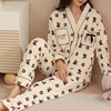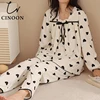 CINOON Women Cotton Pajamas Set Long-Sleeved Trousers Sleepwear Set 100% Viscose Simple Style Female Homewear Comfortable Pyjama