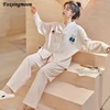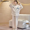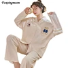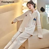 2021 Womens Cotton Pajamas Suit Cartoon Cardigan Autumn Long Sleeve Sleepwear Underwear Plus Size Home Clothes 2-piece Lounge