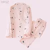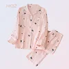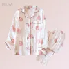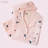 Conjuntos De Pijama Femenino Spring/summer Long Sleeve Cardigan Cartoon Cotton Gauze Pyjama Women New Comfy Two-piece Home Wear