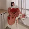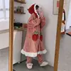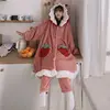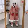Japanese Sweet Winter Plus Velvet Warm Loose Pajamas Set Girls Cute Cardigan Robe Home Wear Pajama Set Women Robe Set sleep tops