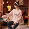 Spring Women's Pajamas 2022 Long-Sleeved Trousers Homewear Cute Sweet Dinosaur Cartoon Printing Pajama Set Casual Two Piece Suit