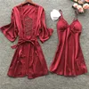 Women Robe & Gown Long Sleeve Ladies Nightwear Sets Sexy Lace Sleep Lounge Pijama Bathrobe Night Dress With Chest Pads
