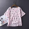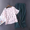 Women's Cotton Pyjamas Water-washed Pijamas Crepe Yarn Short Sleeve Long Pants Sleepwear Home Suit Pajamas 2-piece Set