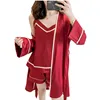 European Women Pajamas Sets 3 Pieces Satin Sleepwear Pijama Spaghetti Strap Silk Sleep Lounge Nightwear Pyjama