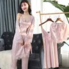 Women Pajamas Sets 5 Pieces Satin Sleepwear Pijama Silk Home Wear Home Clothing Sleep Lounge Pyjama With Chest Pads