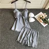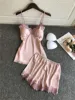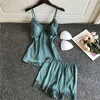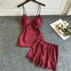 2021 Pyjamas Women Satin Pajamas Sets With Shorts Sleepwear Sleeveless Strap Silk Nightwear Lace Cami Top+Shorts Pijama