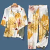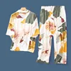 Spring Summer Sleep Lounge Women 100% Cotton Pajamas Sets European Sleepwear Pyjama Femme Flower Print Pijama Nightwear