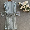 2020 Spring Summer Women Satin Silk Nightgowns Nightshirts Female Loose Sleepshirts Ladies Bridemaid Sleepwear With Sashes