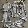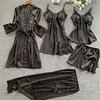spring Autumn Sexy Women Satin Silk Pajamas Sets 5 Pieces Sleepwear Pijama Homewear Sleep Lounge Pyjama With Chest Pads
