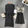 Women Robe Gown Set 2pcs Sleep Lounge Ladies Bathrobe Pyjama Female Comfortable Pijama Nightdress Sexy Nightwear With Chest Pads