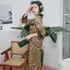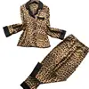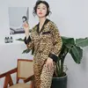 Women's Pajamas Set Vintage Leopard Sleepwear V Neck Design Luxury Print Sleepwear Silk Like Home Clothes Nightwear