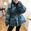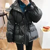 Ladies Solid New Hooded Waist Cotton-Padded Parka Women Winter Down Padded Jacket Warm Windproof Bread Cotton Coat