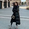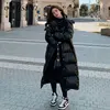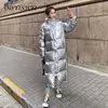 Thick Winter Puffer Jacket Hooded Women Parka Fashion Glossy Silver Warm Outwear X-Long Down Cotton Padded Coat Female Oversize