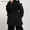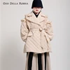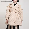OddDellaRobbia Winter New Vintage Wood Ears Mid-Length Padded Coat Loose Lapel Double-Breasted Belt Padded Jacket Women 1908