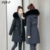 ZQLZ Hooded Plus Size Winter Jacket Women Thick Warm Long Parka Mujer Slim Casual Black Overcoat Femme Fur Collar Coat Female