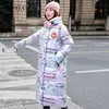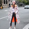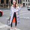 Down Padded Jacket Women's New Winter 2021 Glossy Big Rainbow Newspaper Long Overcoat Hooded Over Knee Cotton Coat Female Parkas